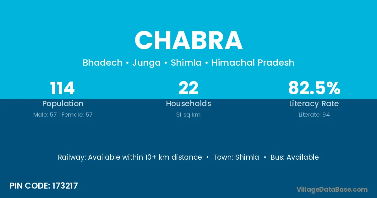 According to Census 2011 information, the village code of Chabra village is 173217.
