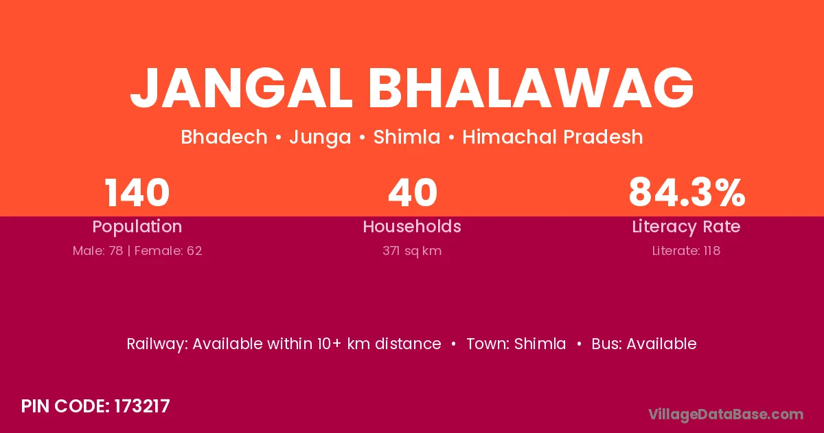 Shimla is the nearest town to Jangal Bhalawag village for major economic activities