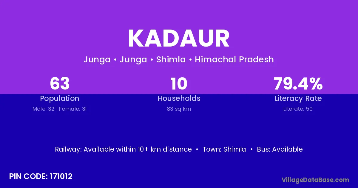 Kadaur village is located in the Junga Tehsil of the Shimla district in Himachal Pradesh .