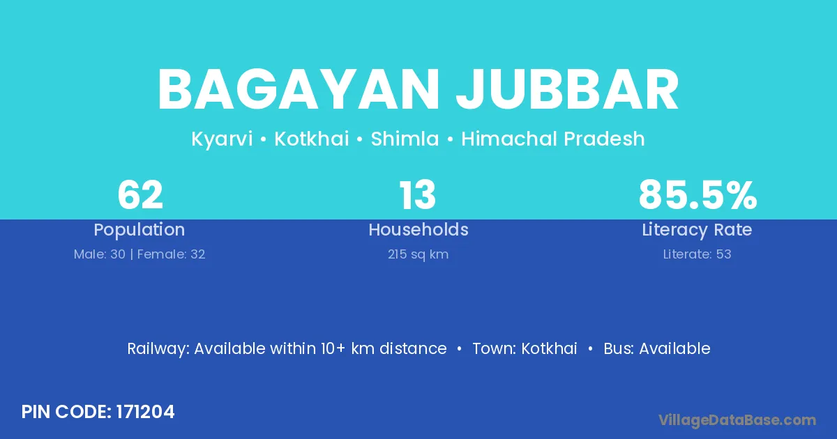 Bagayan Jubbar village is located in the Kotkhai Tehsil of the Shimla district in Himachal Pradesh .