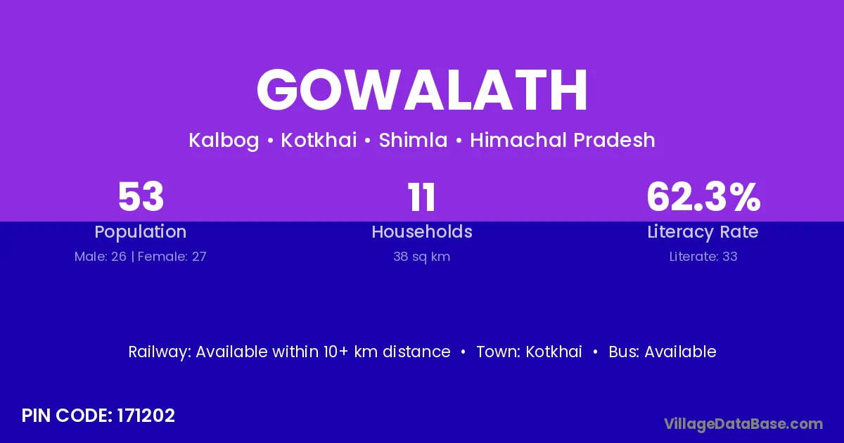 According to Census 2011 information, the village code of Gowalath village is 171202.