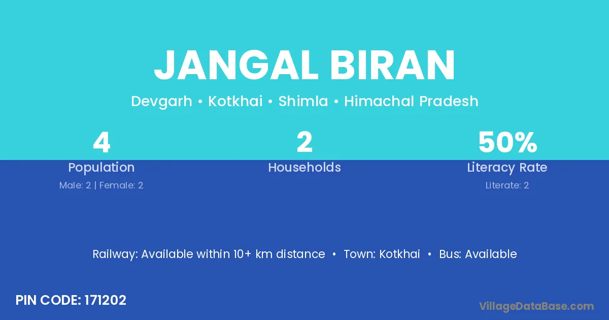 Jangal Biran village has a total population of 4 people, of which 2 are males and 2 are females.