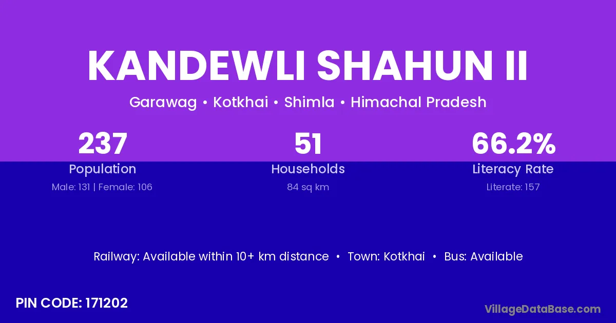 Kandewli Shahun Ii village has a total population of 237 people, of which 131 are males and 106 are females.