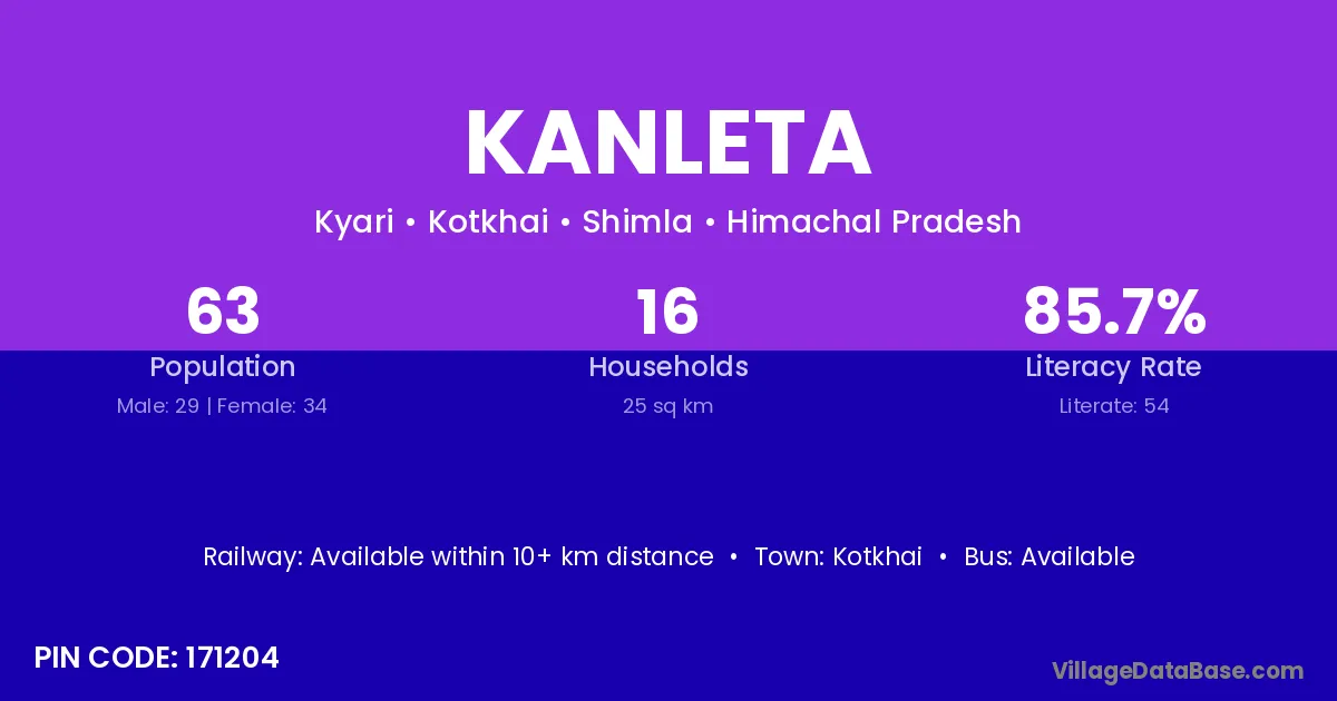 Kanleta village has a total population of 63 people, of which 29 are males and 34 are females.