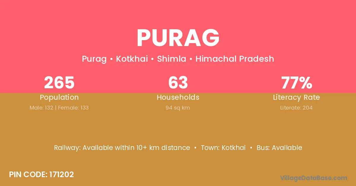 Kotkhai is the nearest town to Purag village for major economic activities