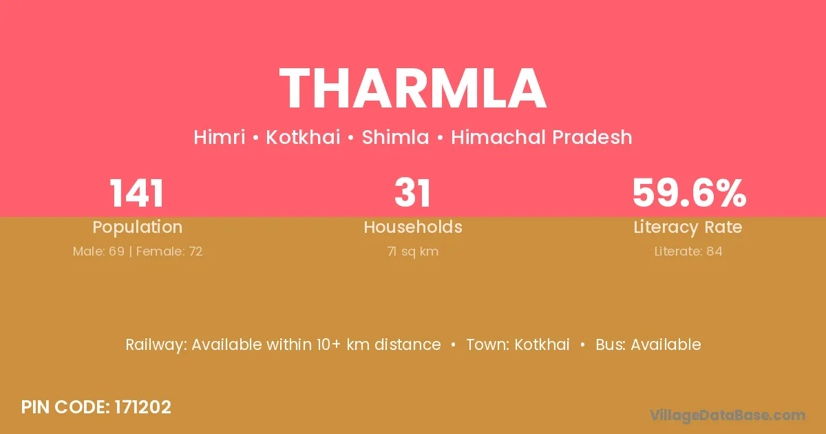 According to Census 2011 information, the village code of Tharmla village is 171202.