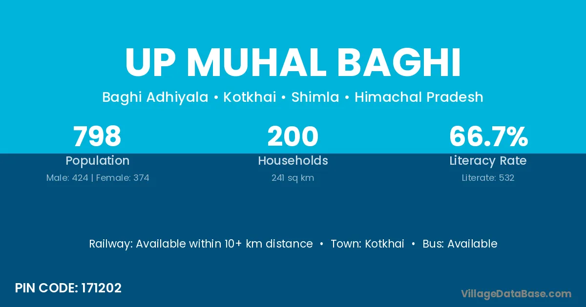 Up Muhal Baghi village is located in the Kotkhai Tehsil of the Shimla district in Himachal Pradesh .