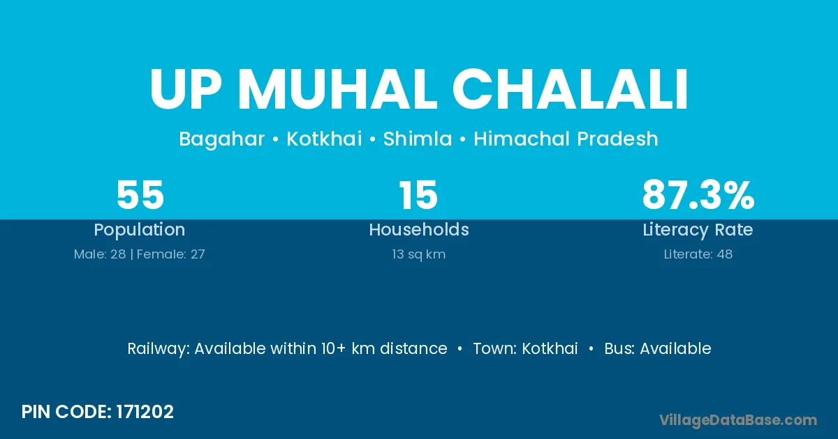 Up Muhal Chalali village has a total population of 55 people, of which 28 are males and 27 are females.