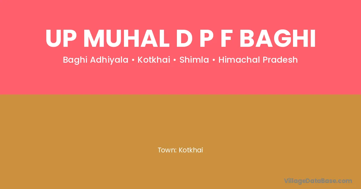 Up Muhal D P F Baghi village is located in the Kotkhai Tehsil of the Shimla district in Himachal Pradesh .