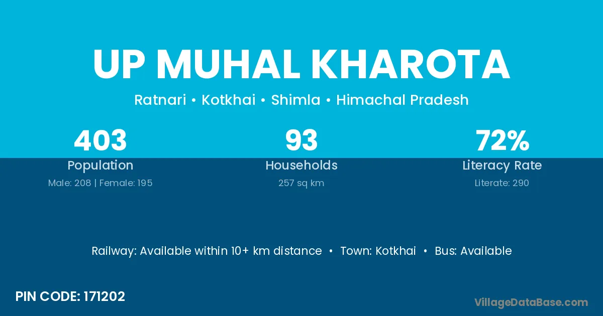 Up Muhal Kharota village has a total population of 403 people, of which 208 are males and 195 are females.