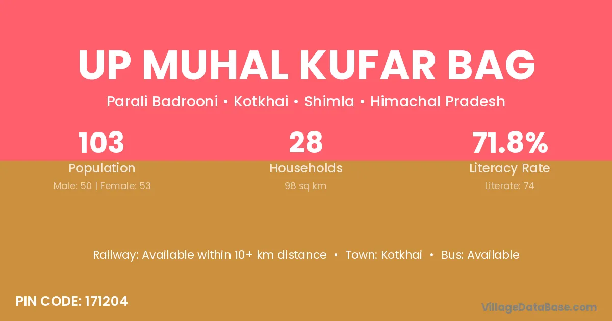 Kotkhai is the nearest town to Up Muhal Kufar Bag village for major economic activities