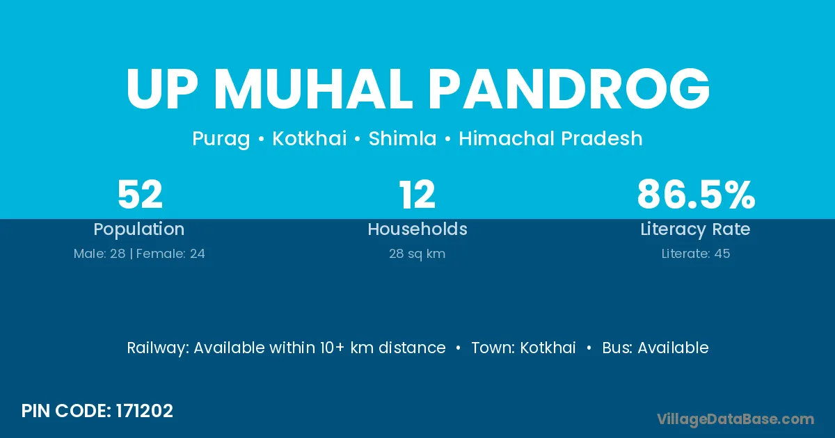 Up Muhal Pandrog village is located in the Kotkhai Tehsil of the Shimla district in Himachal Pradesh .