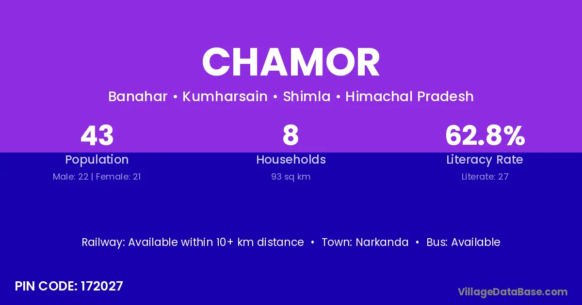 Narkanda is the nearest town to Chamor village for major economic activities