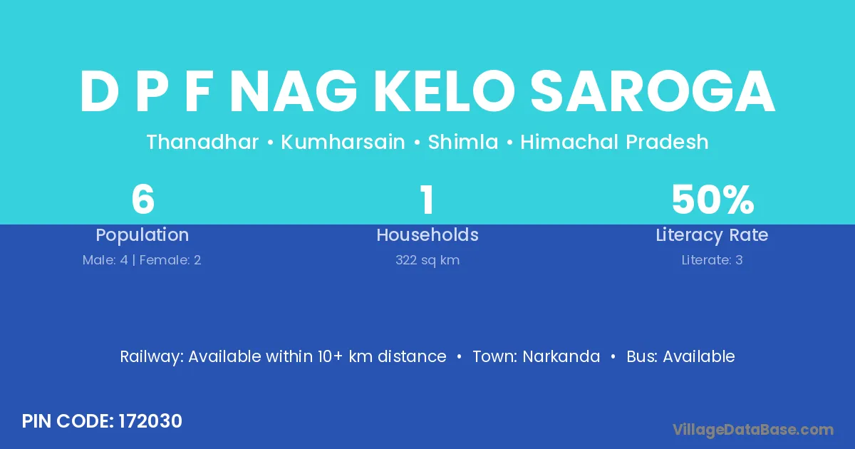 Narkanda is the nearest town to D P F Nag Kelo Saroga village for major economic activities