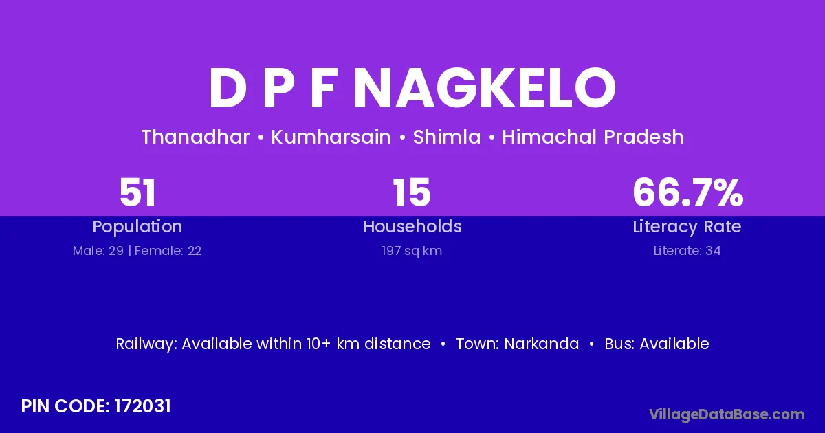 Narkanda is the nearest town to D P F Nagkelo village for major economic activities