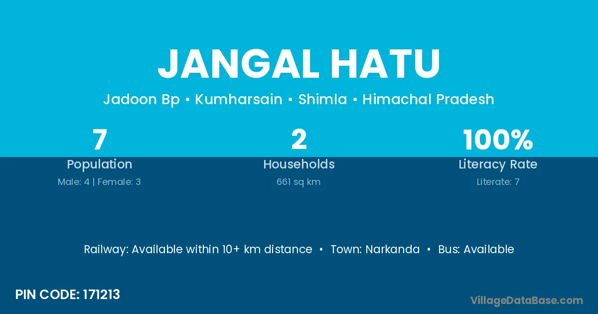 Jangal Hatu village has a total population of 7 people, of which 4 are males and 3 are females.