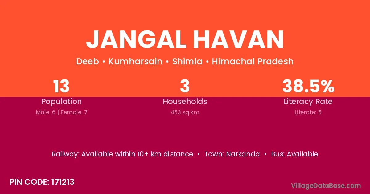 Jangal Havan village has a total population of 13 people, of which 6 are males and 7 are females.
