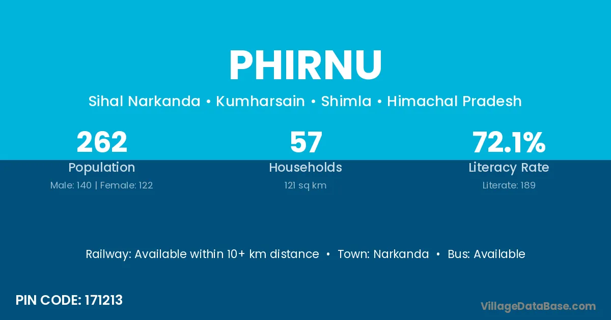 Narkanda is the nearest town to Phirnu village for major economic activities