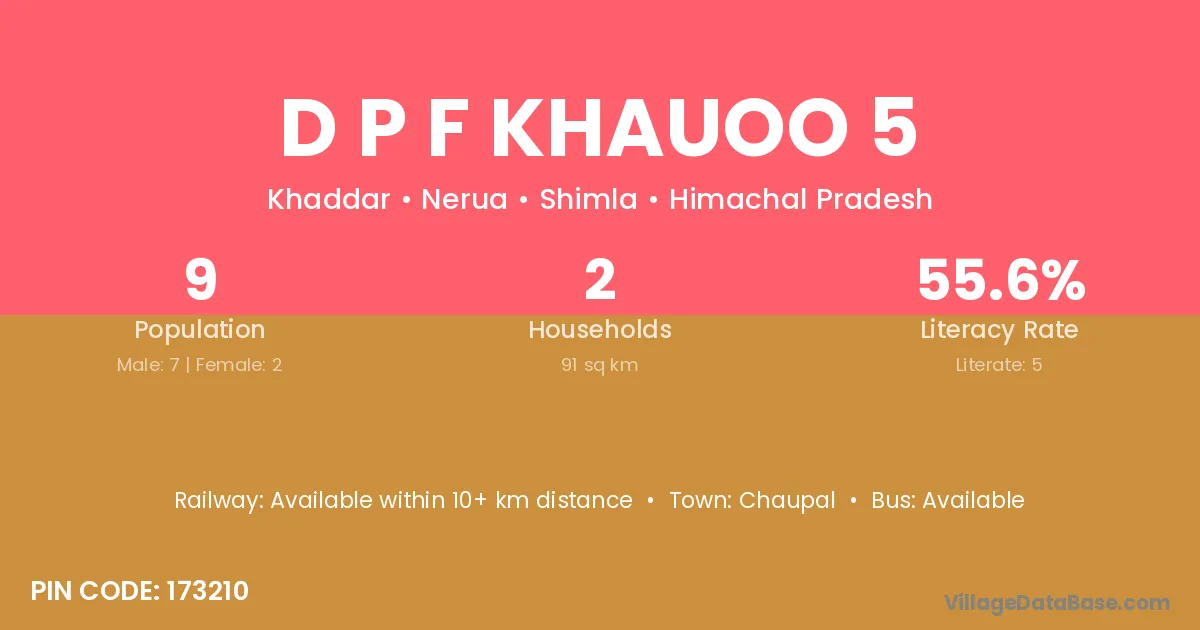 D P F Khauoo 5 village has a total population of 9 people, of which 7 are males and 2 are females.