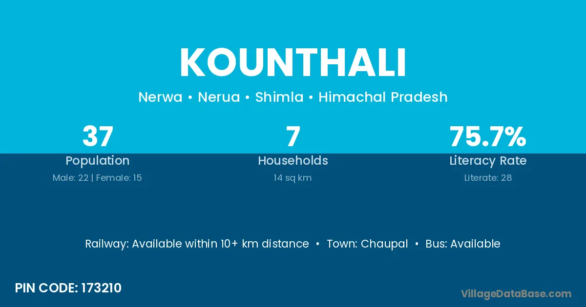 According to Census 2011 information, the village code of Kounthali village is 173210.