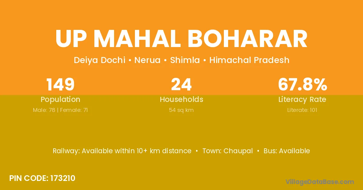Up Mahal Boharar village has a total population of 149 people, of which 78 are males and 71 are females.