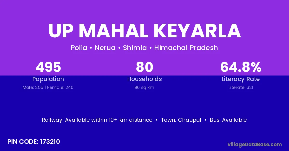 Up Mahal Keyarla village has a total population of 495 people, of which 255 are males and 240 are females.