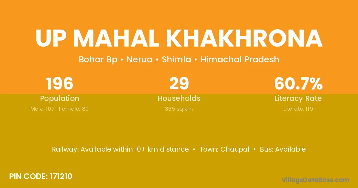 Up Mahal Khakhrona village is located in the Nerua Tehsil of the Shimla district in Himachal Pradesh .
