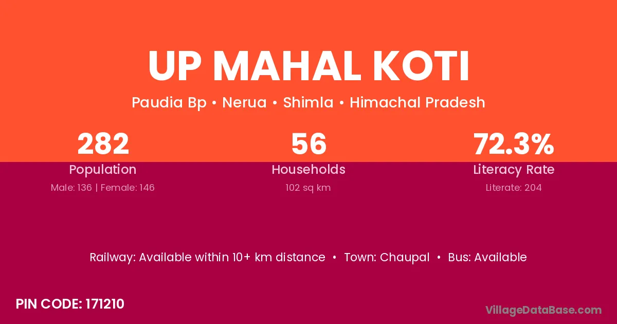 Up Mahal Koti village has a total population of 282 people, of which 136 are males and 146 are females.