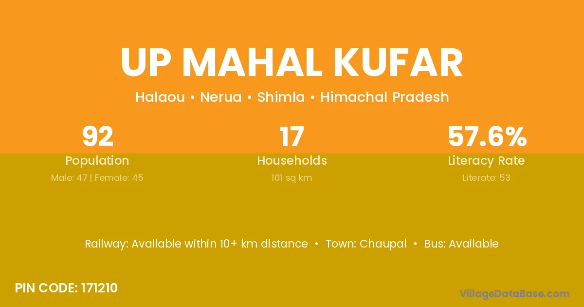 Up Mahal Kufar village has a total population of 92 people, of which 47 are males and 45 are females.