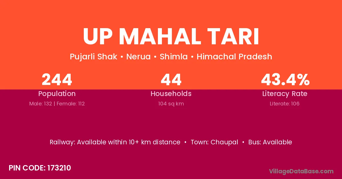 Up Mahal Tari village has a total population of 244 people, of which 132 are males and 112 are females.