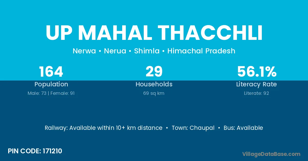 Up Mahal Thacchli village has a total population of 164 people, of which 73 are males and 91 are females.