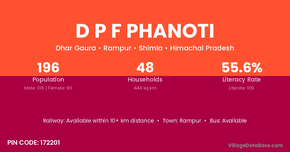 D P F Phanoti village has a total population of 196 people, of which 106 are males and 90 are females.