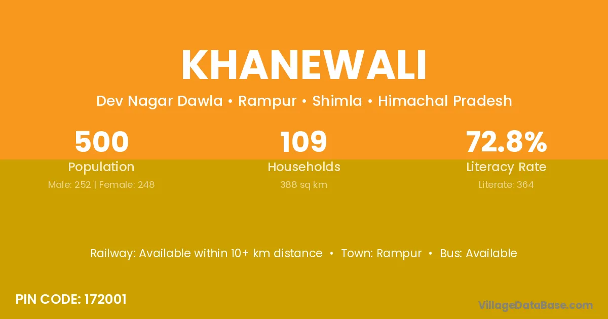 Khanewali village has a total population of 500 people, of which 252 are males and 248 are females.