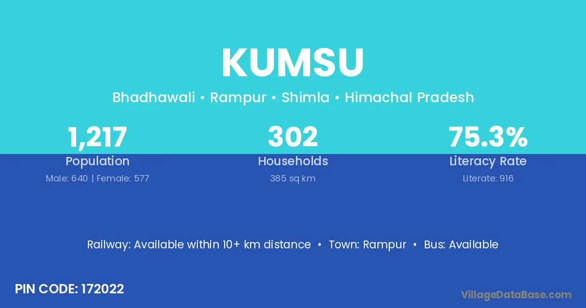 Kumsu village has a total population of 1,217 people, of which 640 are males and 577 are females.