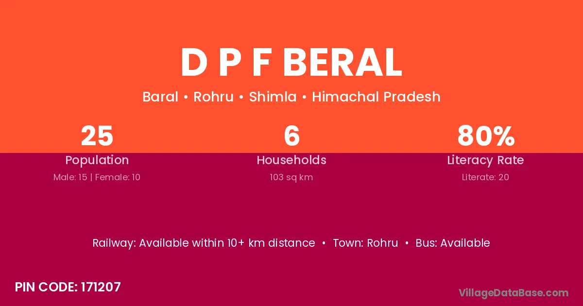 D P F Beral village has a total population of 25 people, of which 15 are males and 10 are females.