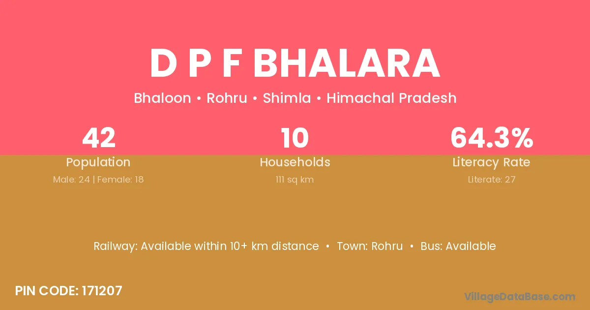 D P F Bhalara village is located in the Rohru Tehsil of the Shimla district in Himachal Pradesh .