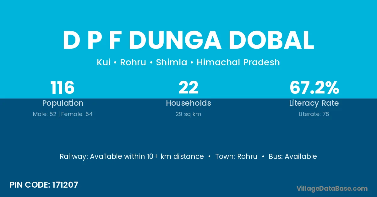 Rohru is the nearest town to D P F Dunga Dobal village for major economic activities