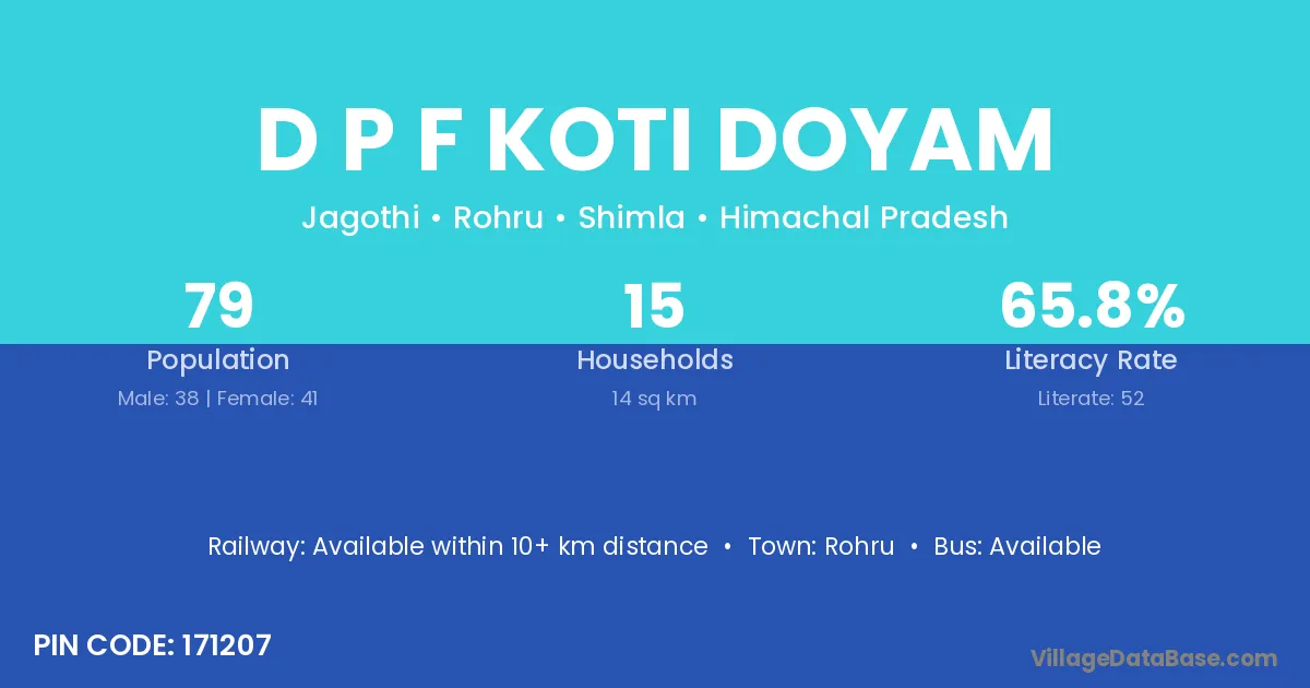 Rohru is the nearest town to D P F Koti Doyam village for major economic activities