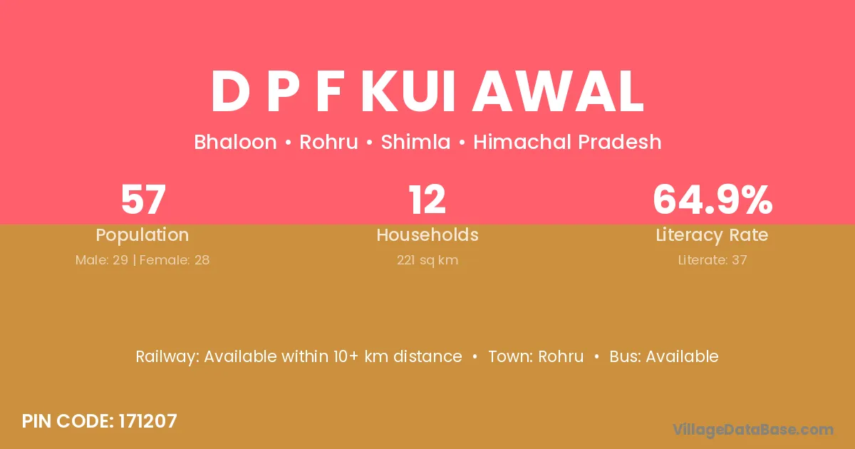 D P F Kui Awal village is located in the Rohru Tehsil of the Shimla district in Himachal Pradesh .