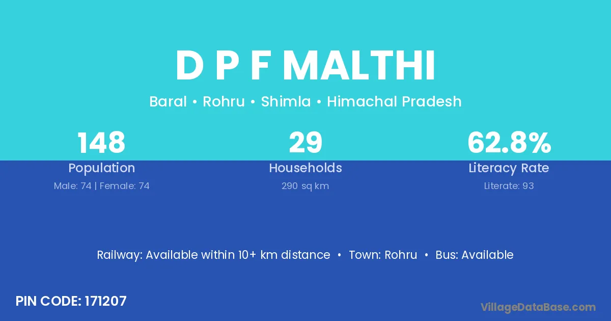 Rohru is the nearest town to D P F Malthi village for major economic activities