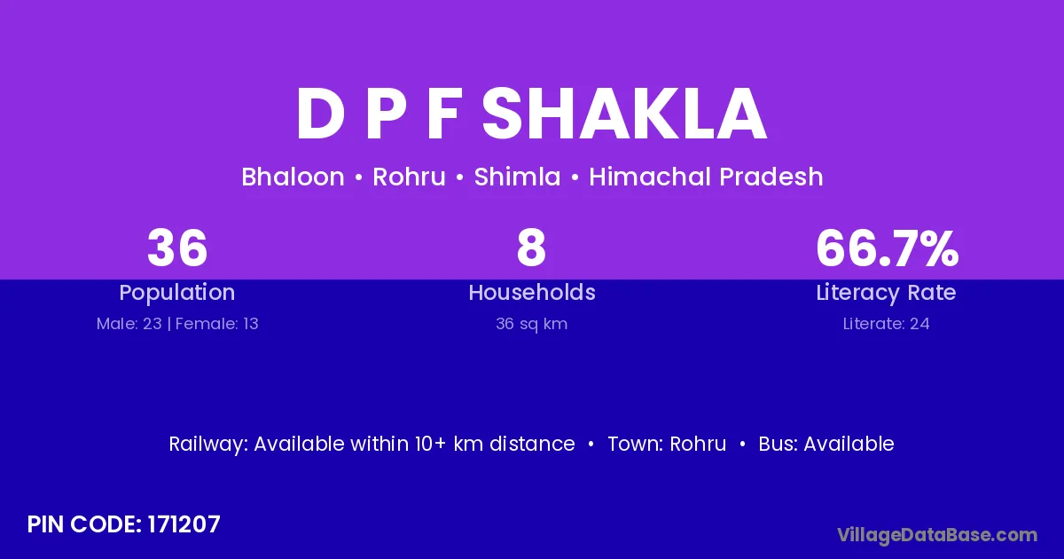 Rohru is the nearest town to D P F Shakla village for major economic activities