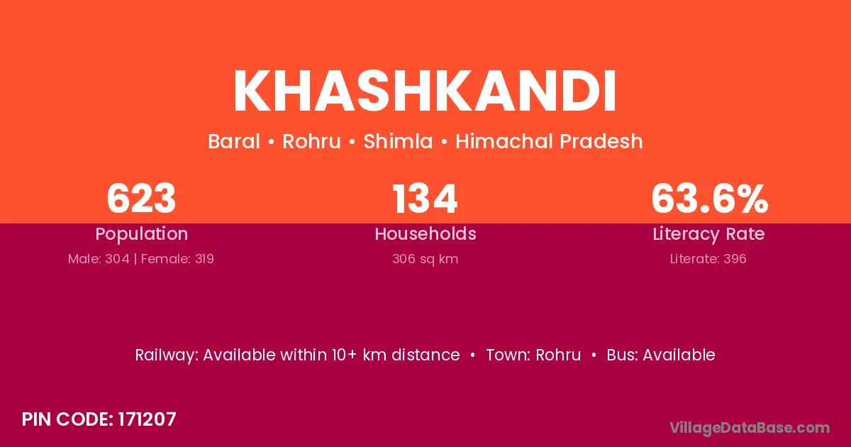 Khashkandi village has a total population of 623 people, of which 304 are males and 319 are females.