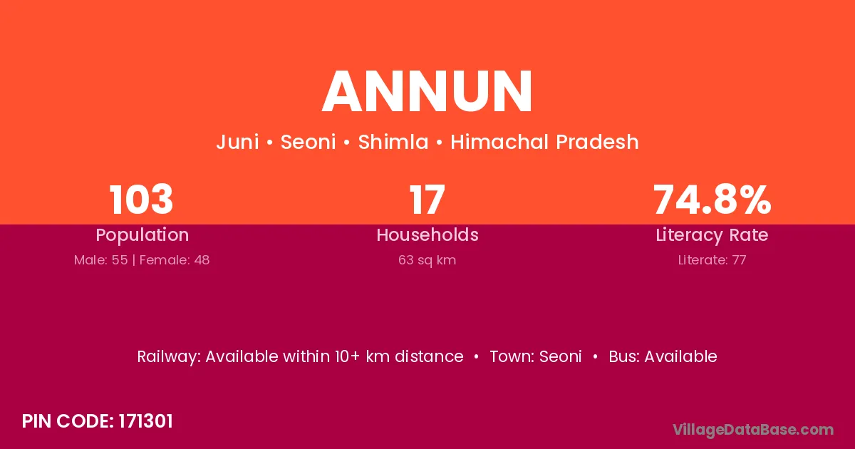 Annun village is located in the Seoni Tehsil of the Shimla district in Himachal Pradesh .