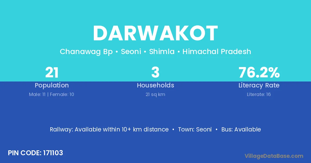 Darwakot village has a total population of 21 people, of which 11 are males and 10 are females.