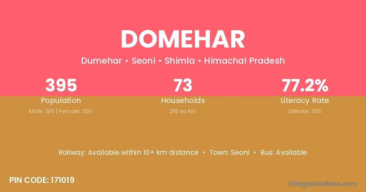 Domehar village has a total population of 395 people, of which 195 are males and 200 are females.