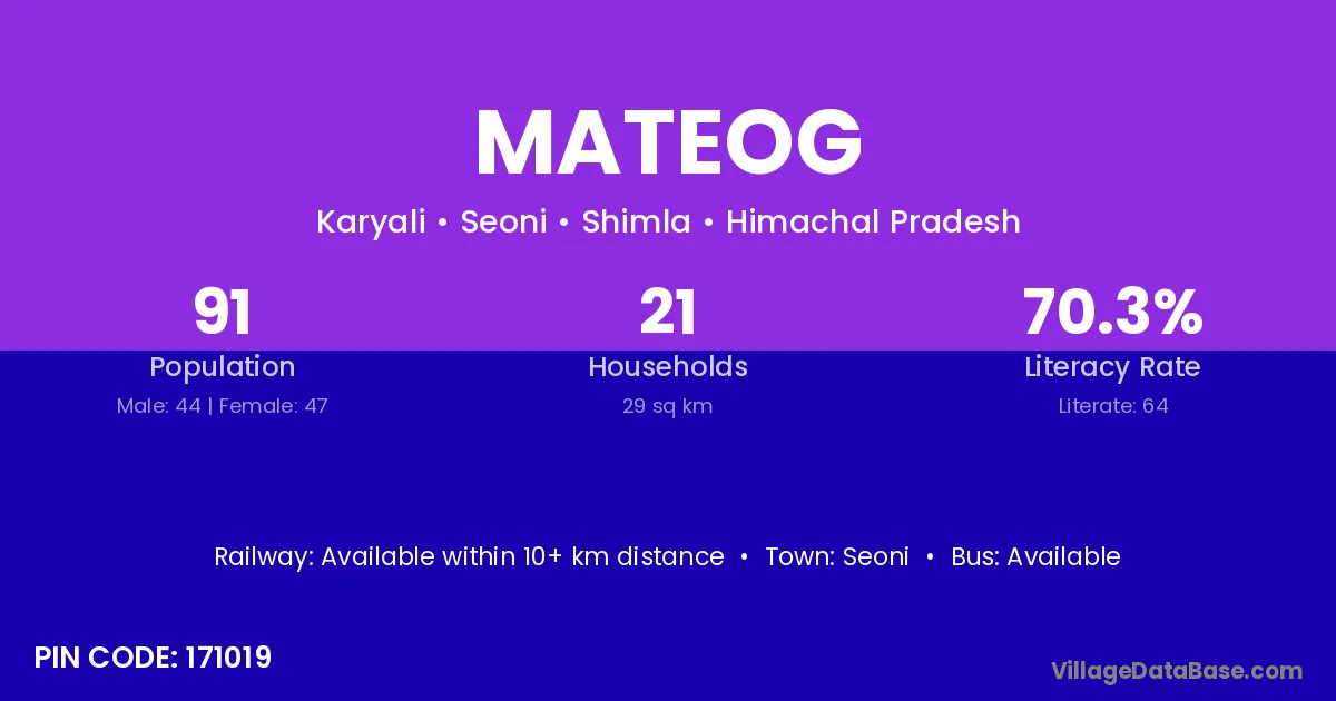 Mateog village is located in the Seoni Tehsil of the Shimla district in Himachal Pradesh .