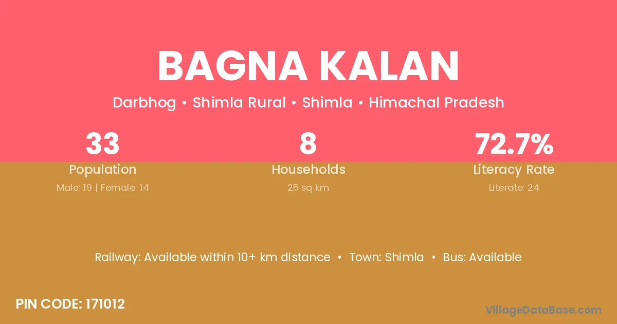Shimla is the nearest town to Bagna Kalan village for major economic activities