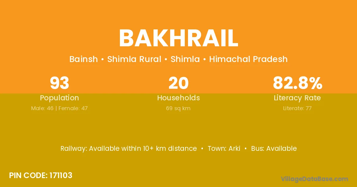 Bakhrail village has a total population of 93 people, of which 46 are males and 47 are females.
