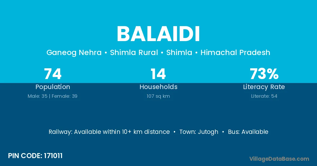 Jutogh is the nearest town to Balaidi village for major economic activities