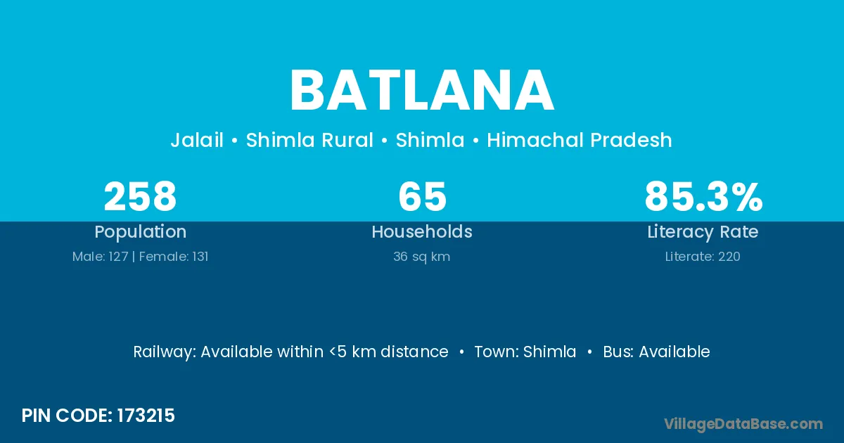 Batlana village is located in the Shimla Rural Tehsil of the Shimla district in Himachal Pradesh .